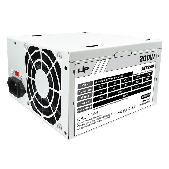 A Fonte UP Gamer ATX24P, 200W, c/Cabo, Bivolt Chaveada, Prata, 24-Pin, 50-60Hz 6/4A é uma fonte de 200W indicada para computadores de uso doméstico e de trabalho básico, oferecendo eficiência e confiabilidade para o seu sistema.